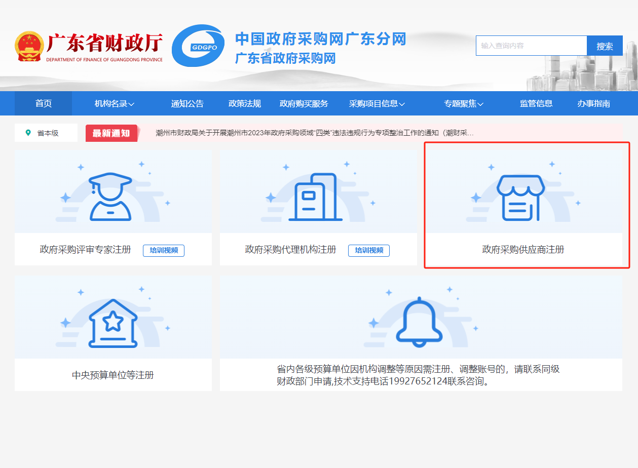1、登錄廣東省政府采購網(wǎng)